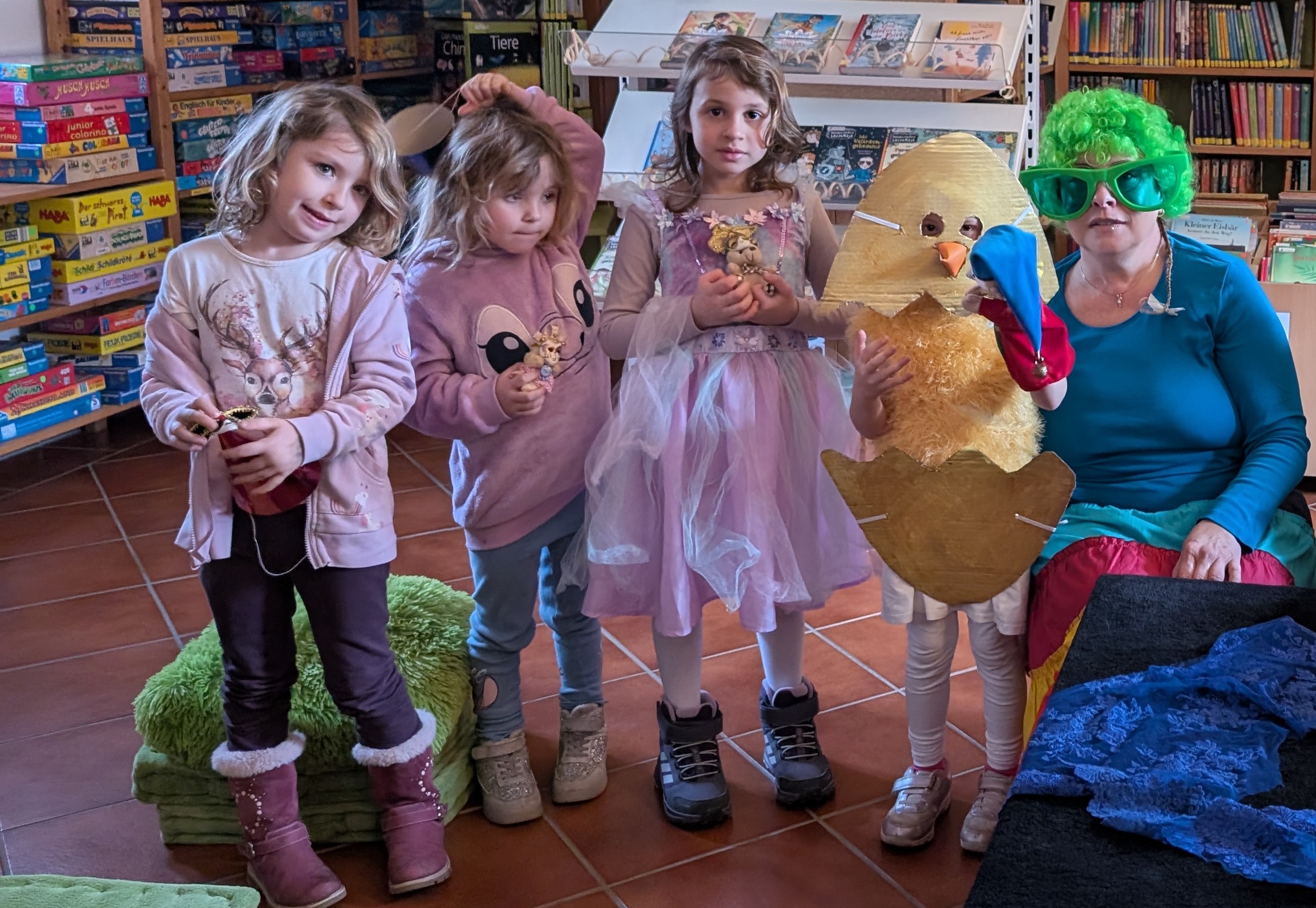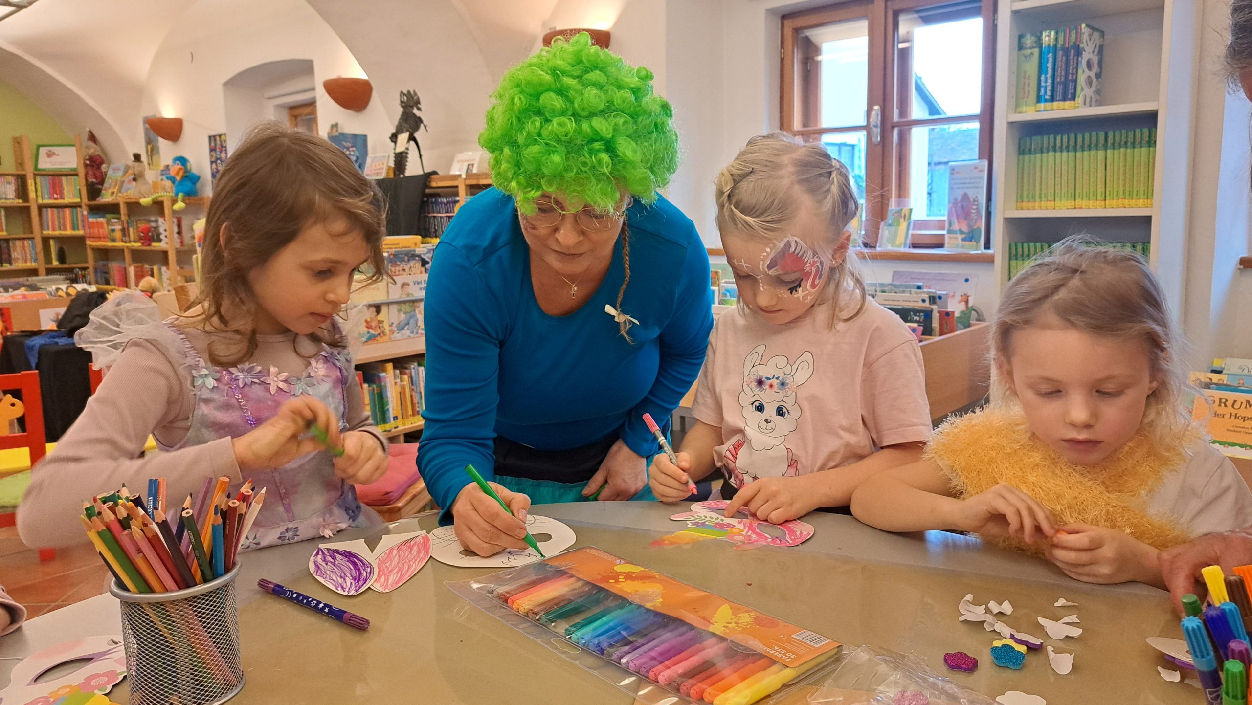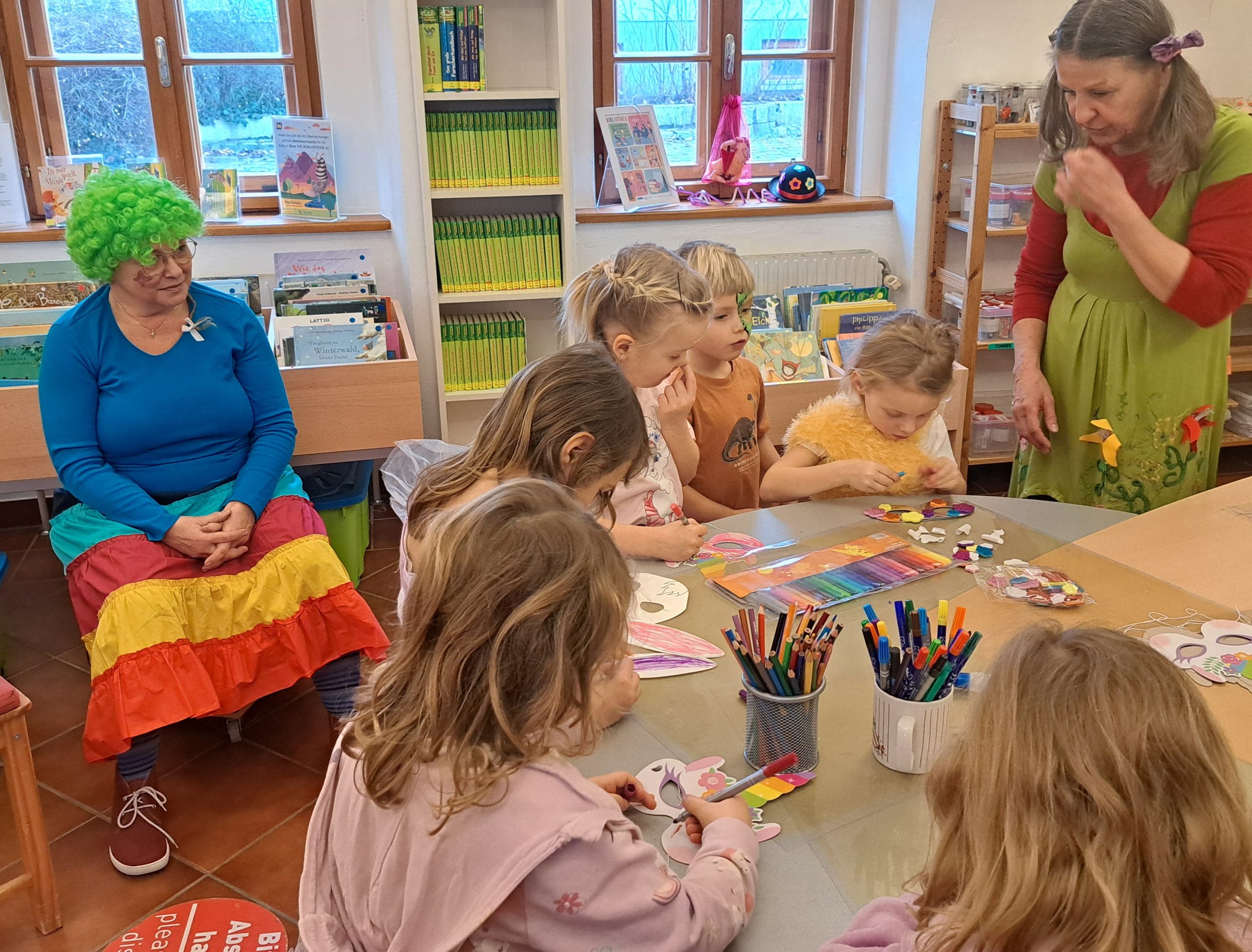 Margit und Gitti sorgten mit einer Geschichte von Kasperl und Petzi in Venedig für Spannung. Danach konnten die Kinder Masken bemalen und sich schminken lassen. Die Bilder lassen erkennen, dass es den Kindern Spaß gemacht hat.